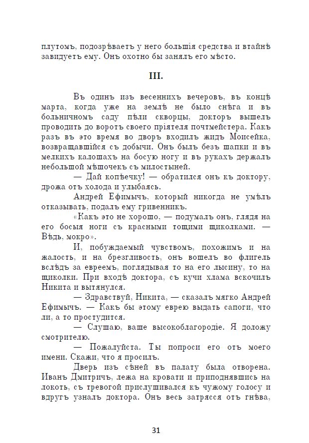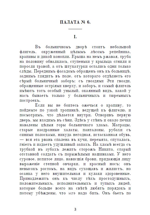 Представляемъ вамъ повѣсть Антона Павловича Чехова «Палата № 6». Впервые она была опубликована въ 1892 году въ журналѣ «Русская мысль».
