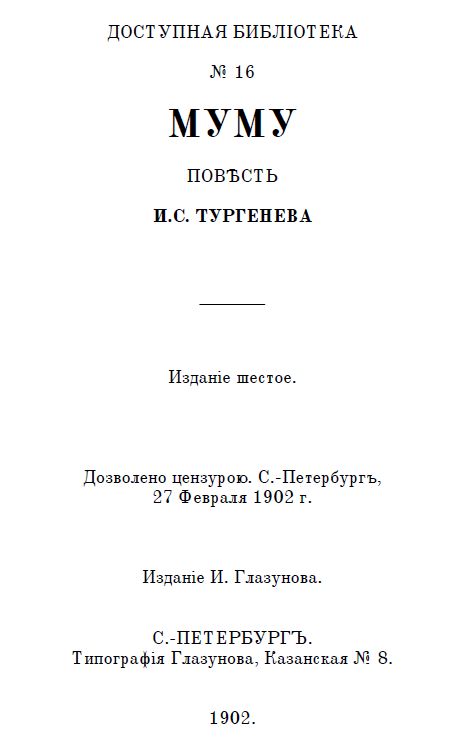 Представляемъ вамъ разсказъ Ивана Сергѣевича Тургенева «Муму», написанный въ 1852 году.