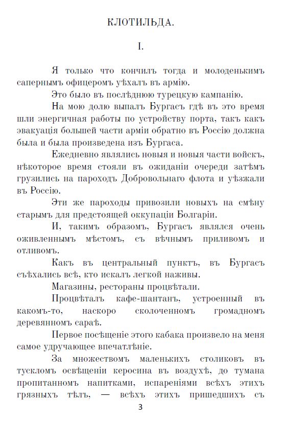 Представляемъ вамъ разсказъ Николая Георгіевича Гарина‑Михайловскаго «Клотильда», написанный въ 1908 году.