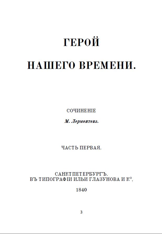 Представляемъ вамъ замѣчательный романъ русскаго поэта Михаила Юрьевича Лермонтова «Герой нашего времени». Онъ написанъ авторомъ въ 1838–1840 годахъ. По своему жанру произведеніе представляетъ первый въ русской прозѣ лирико-психологическій романъ.